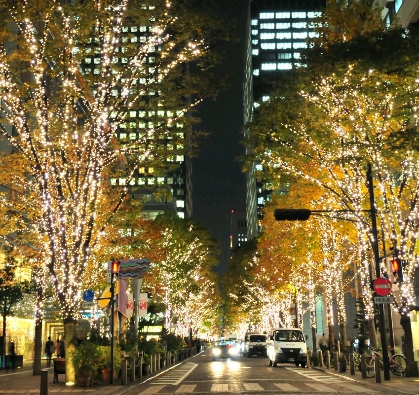 秋の名残がある街並みに、最初のイルミネーションが灯った瞬間、
